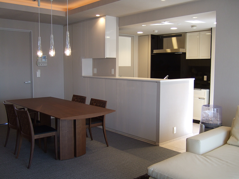 "Open Kitchen" and "Island Kitchen" are two words that have become firmly established in the contemporary home repertoire. To create the effect of preparing dinner in the living room it is critical to know what to reveal and what to hide. This client didn't want a kitchen that was “too open and unsettled” so we created a kitchen that wraps around the space as if protecting it in order to create a sense of security. In setting the counter height, sightlines and distance to the living room were considered. It has become a kitchen where a sense of seclusion co-exists with a sense of freedom and openness.