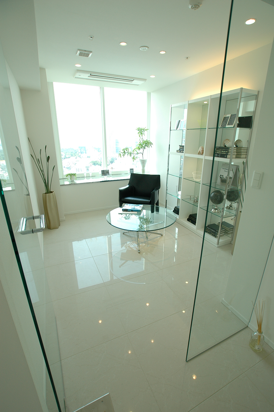 玄関を入ると正面に位置していた洋室をリデザイン。思いきったガラス使いがあふれる光を玄関まで届け、扉を開けた瞬間に別世界がひろがります。